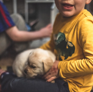 My husband Brandon and I live with our two high school age children and a bunch of fur kids. We believe it is important to introduce the puppies to young children and a variety of adults before they leave our home. Therefore we throw puppy cuddle parties and invite friends with little children to come interact with the puppies. They are supervised closely and thrive on the attention. My friends and their kids love it and it prepares the puppies for homes with young children.